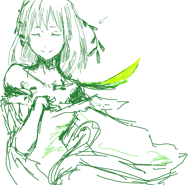 緑って言うと植物ぐるぐるまきの精霊っぽいおねぇさんorおにぃさん描いとけばいいんじゃないかな!!